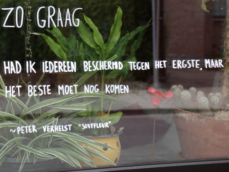 Het feit dat alles anders is maakt ook dat onze agenda’s samen plots zo heel veel verschillen. We doen beiden gemakkelijk ons ding en dan lopen we elkaar voorbij. Gek toch dat nu er net meer tijd is voor elkaar. Het schuurde soms wel…Met als resultaat dat ik me in mezelf terugtrek, voor jan & leen geen tijd en ruimte in mijn hoofd.Ik heb je soms wel echt gemist deze week. Jij leek altijd van alles te doen te hebben en dat voelde soms eenzaam en moeilijk. Op zo’n moment zal ik je zelden spontaan een knuffel geven al zou ik het wel willen…Corona en agenda en agenda even afstemmen op elkaar dus! Het was niet altijd makkelijk want het nieuws, de cijfers, donkere gedachten, zorgen om de kinderen, ze verhogen de stress bij ons beiden. Anderzijds zie ik ook wel hoe we beiden zin, rust en creativiteit opzoeken om in balans te komen.
